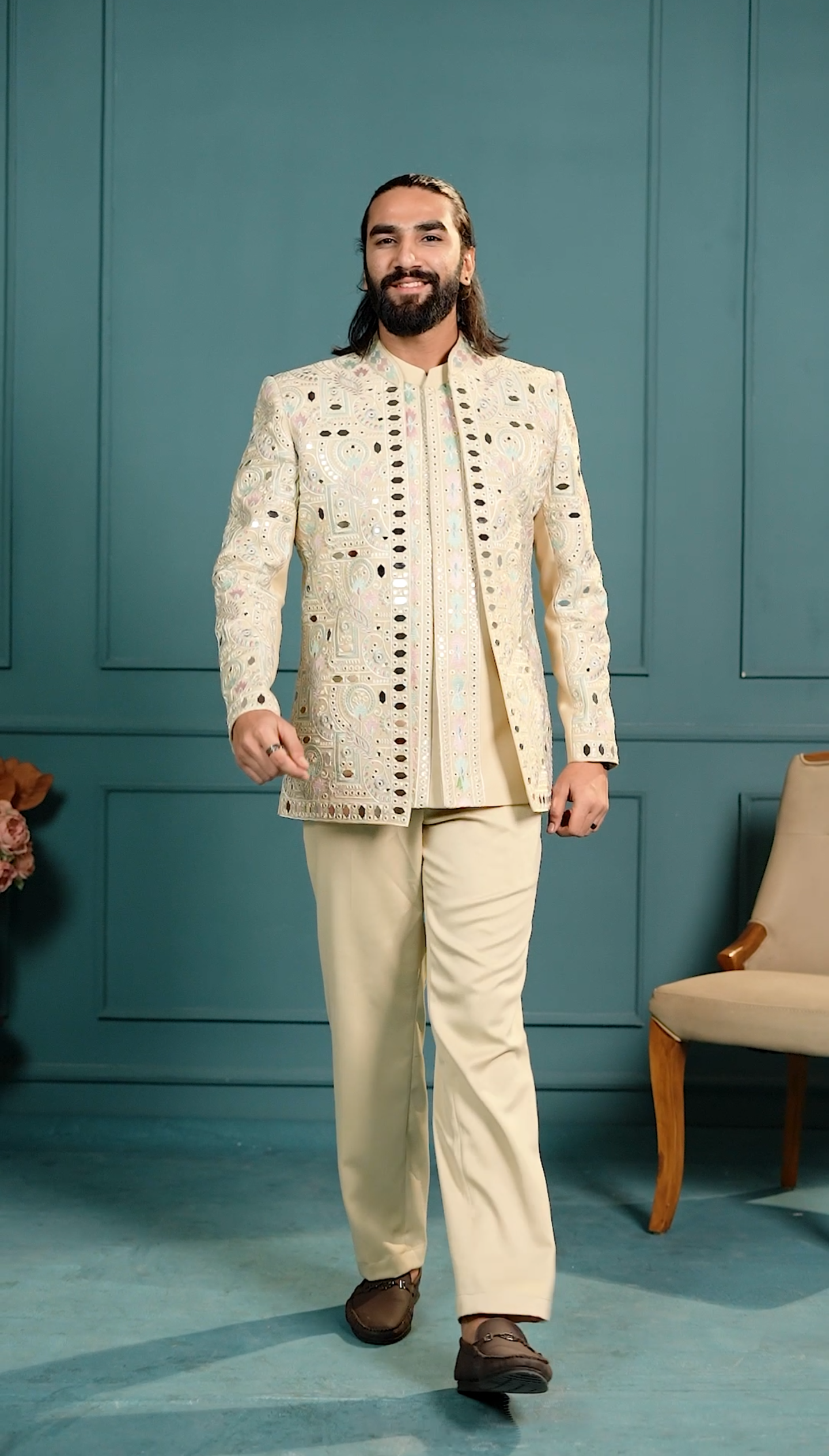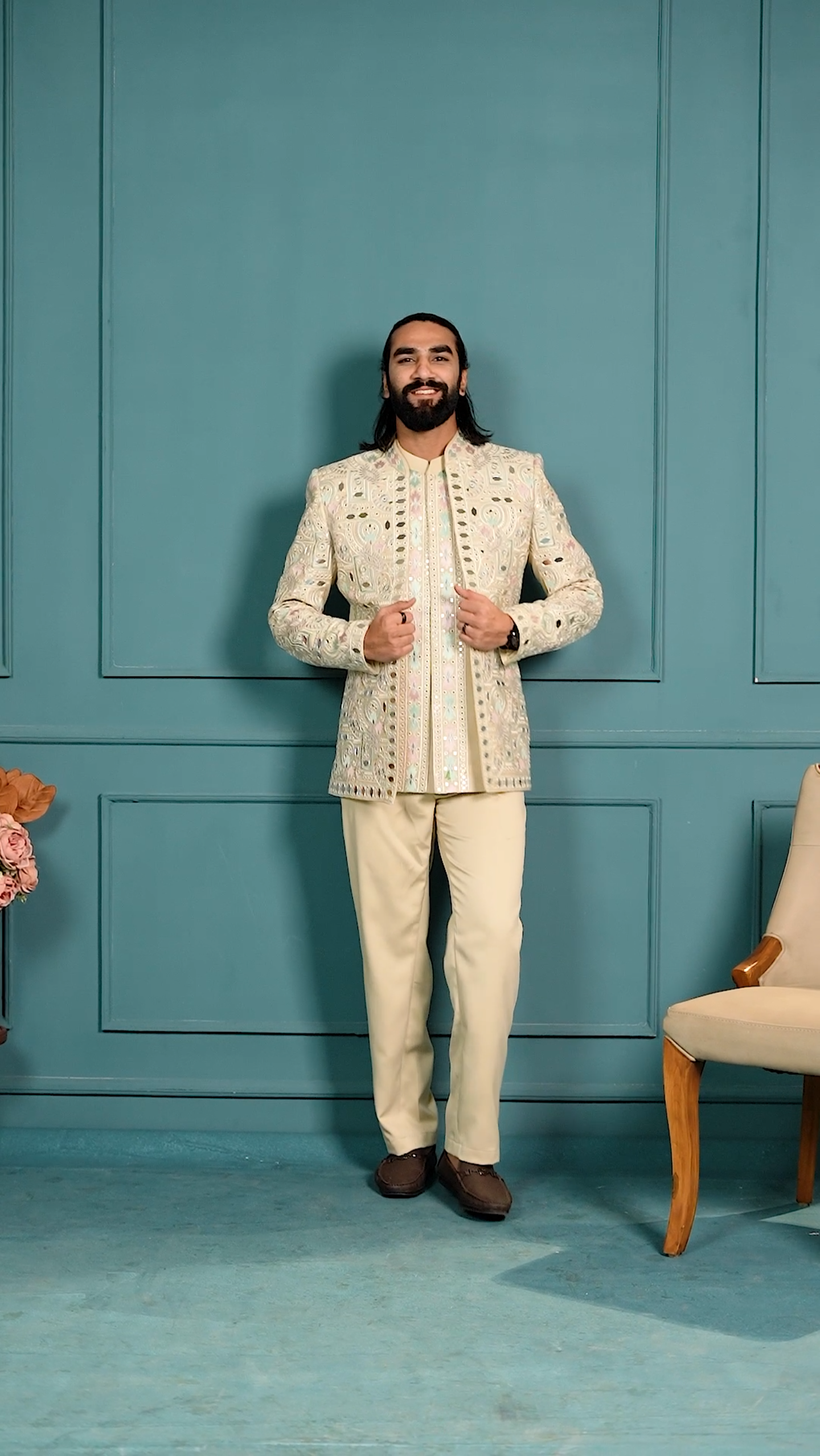 Our 3-piece Jodhpuri sets feature a tailored jacket, a sleeveless coti, and a perfectly cut formal pant.