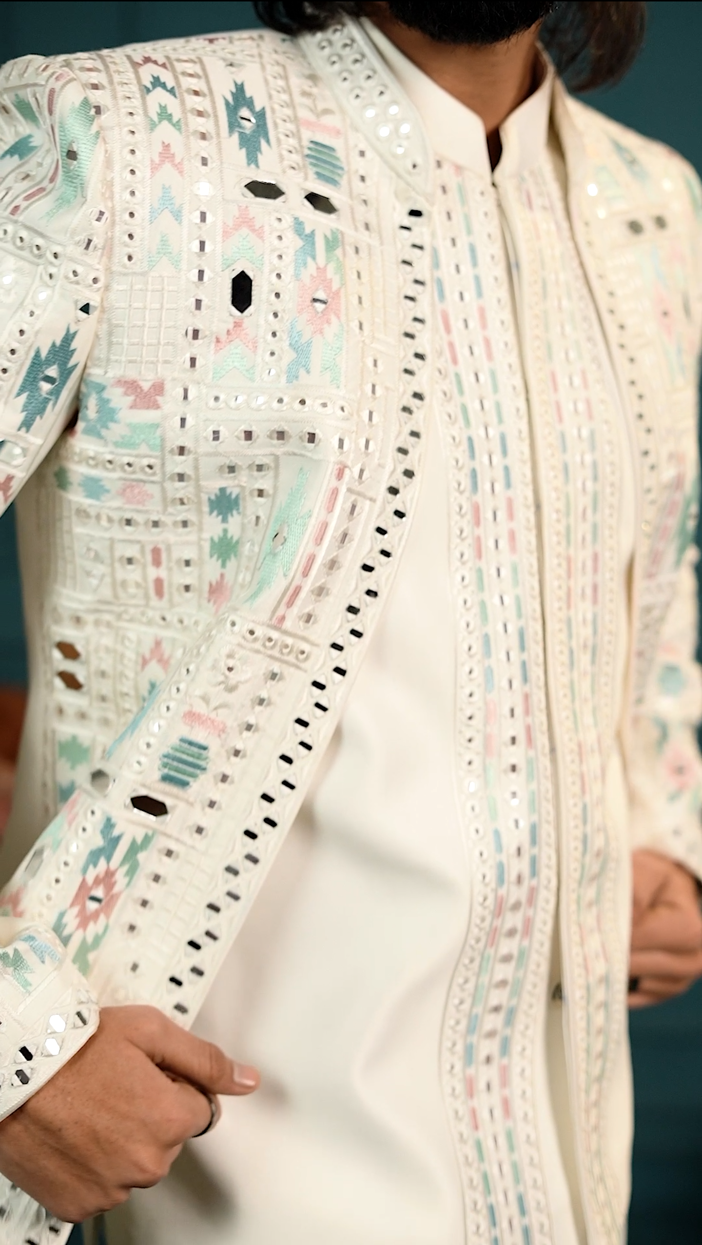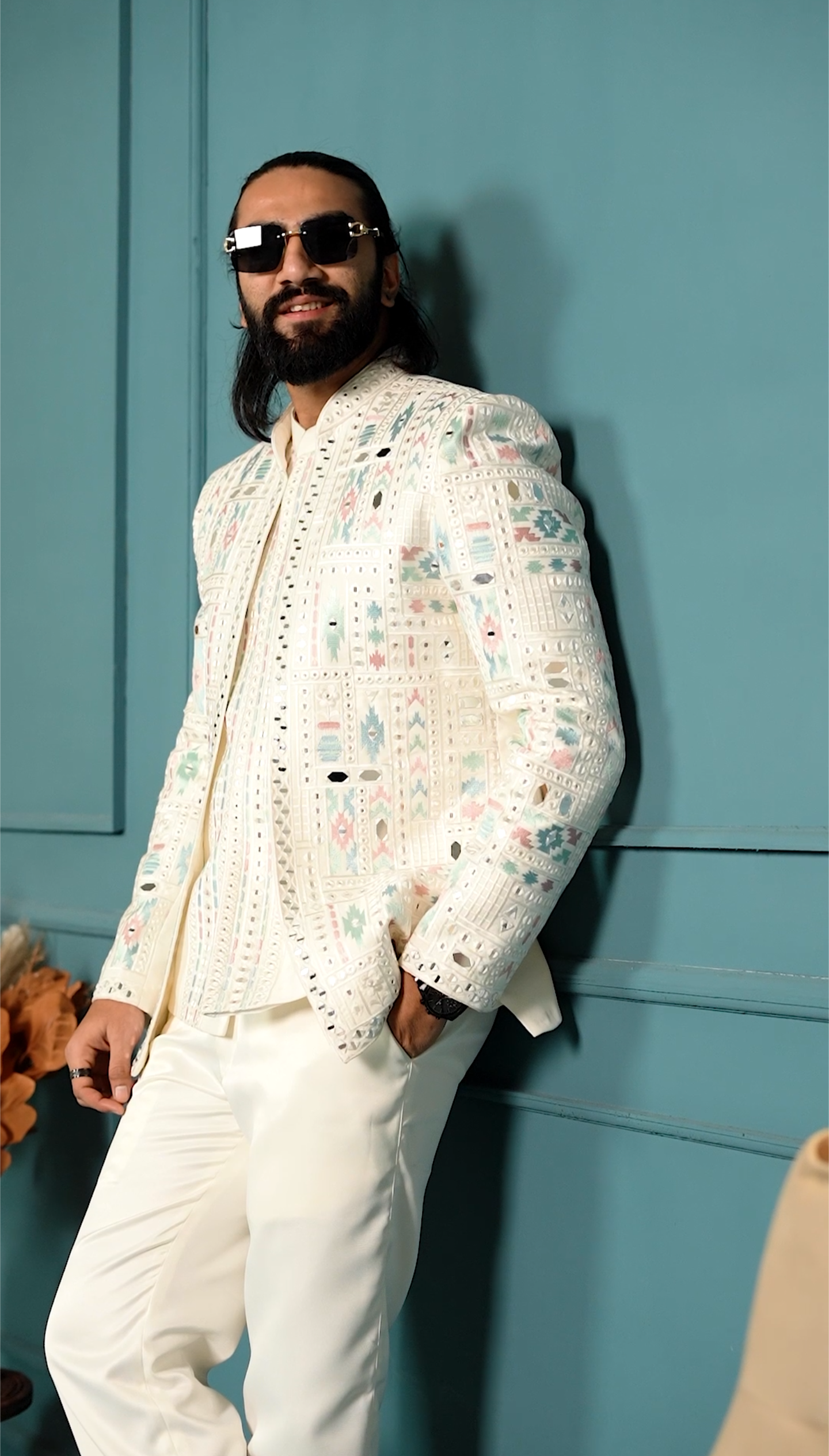 Our 3-piece Jodhpuri sets feature a tailored jacket, a sleeveless coti, and a perfectly cut formal pant.